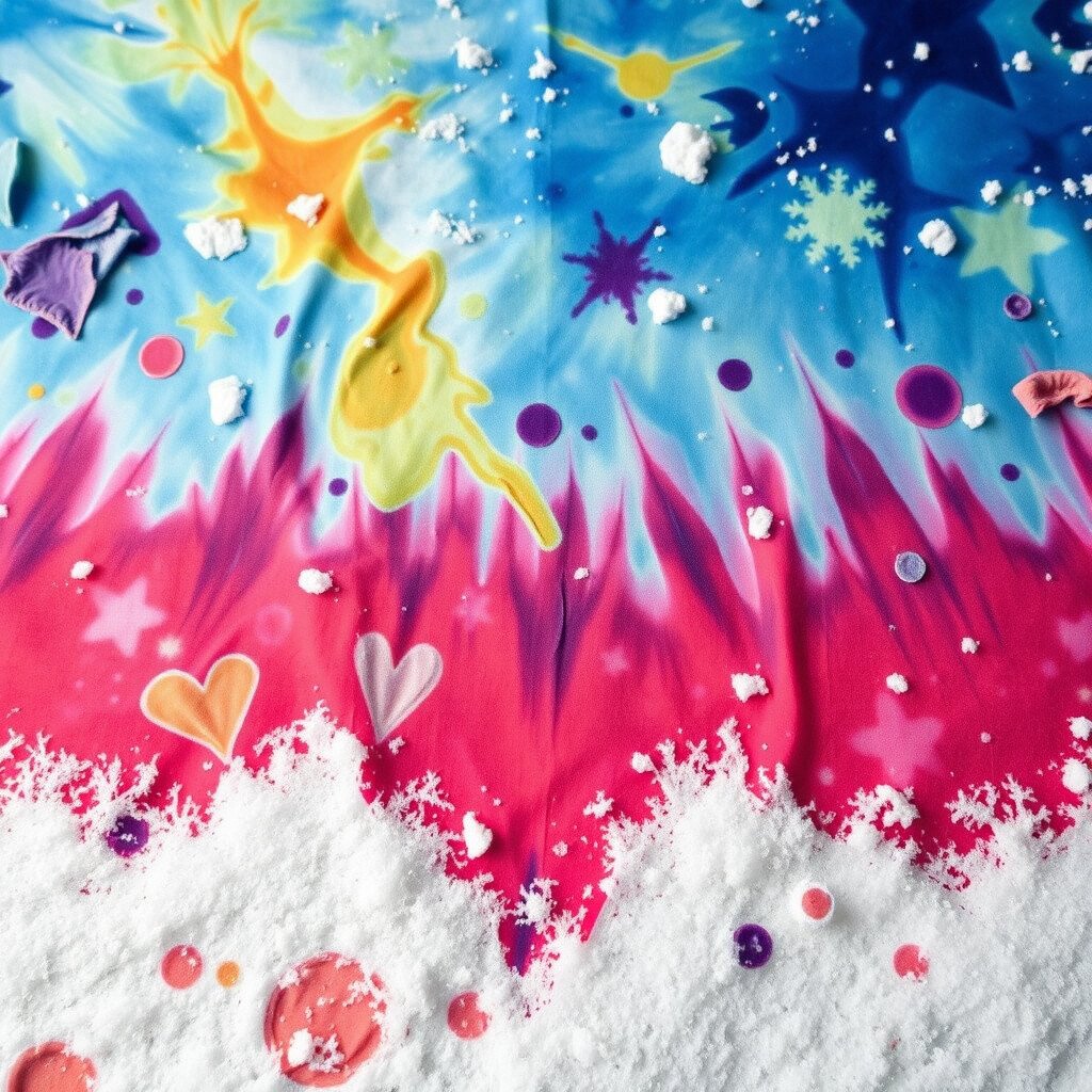 Try snow-dyeing for a unique, unpredictable pattern on fabric. This technique involves sprinkling dye over fabric covered in snow.