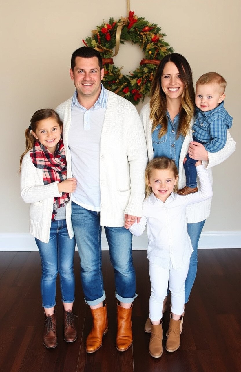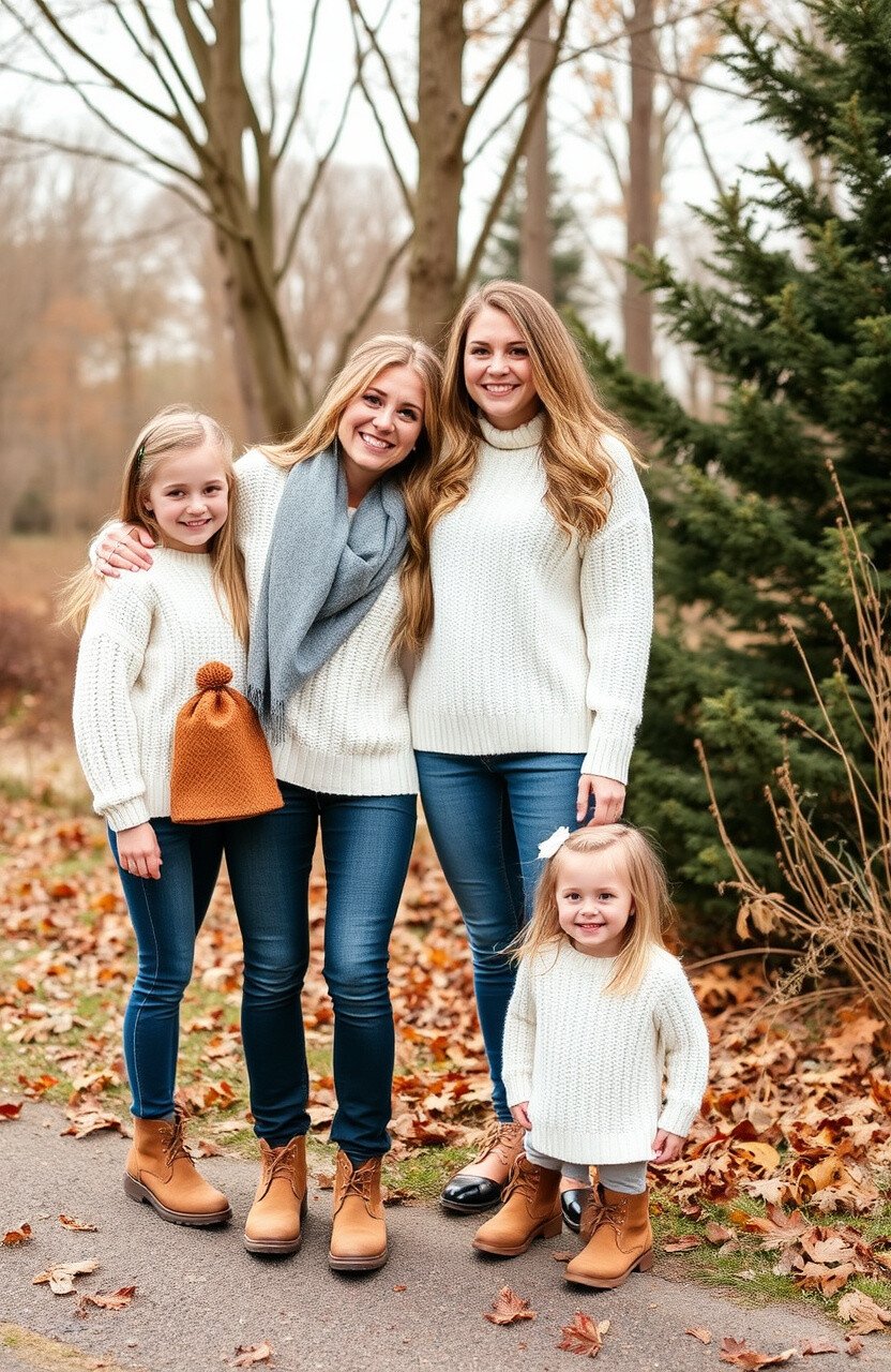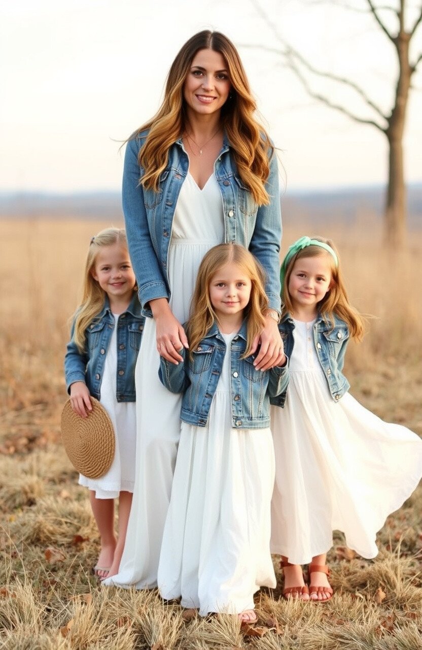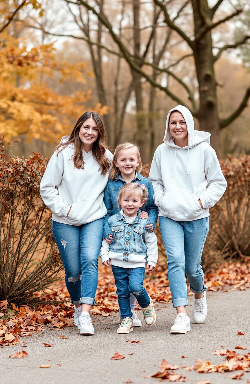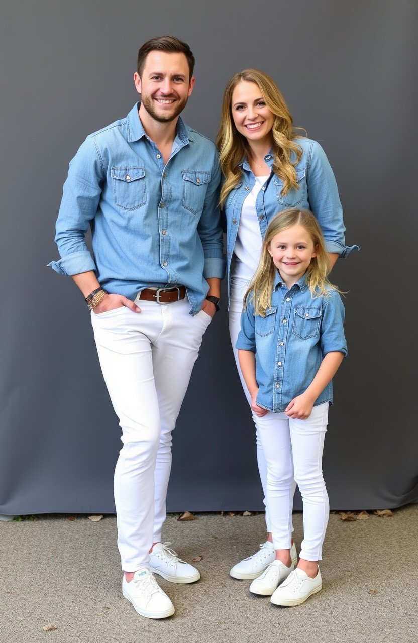 Imagine a crisp fall morning, leaves crunching underfoot, and the perfect family photoshoot moment captured in denim and white. This classic combination offers endless possibilities to showcase your family’s unique style while enjoying the seasonal beauty.