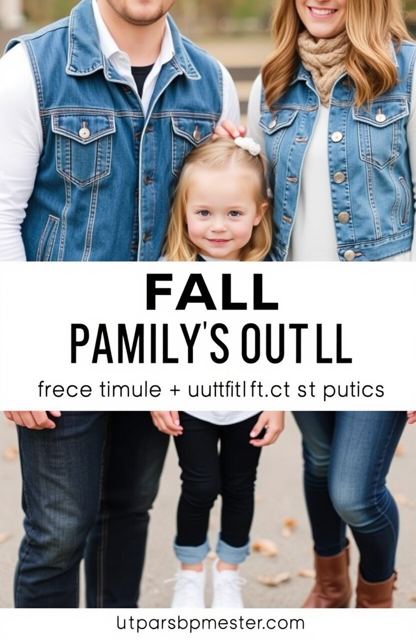 Denim vests paired with white long sleeves create a layered look that’s perfect for fall. It’s a versatile option that suits everyone in the family.