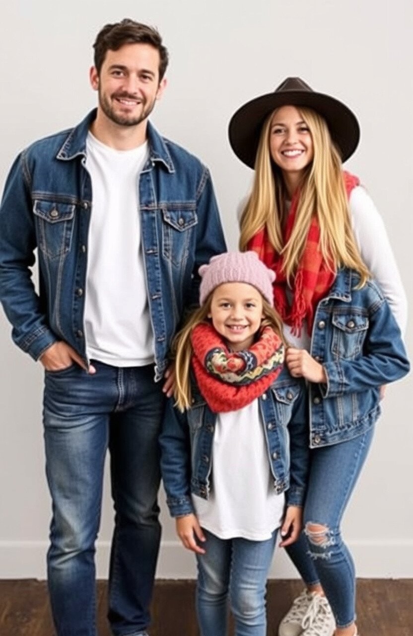 Who doesn’t love a timeless denim jacket paired with a crisp white tee? This combo is simple yet impactful. Everyone in the family can wear their own style of denim jacket, whether it’s oversized, fitted, or even a denim vest for the little ones.