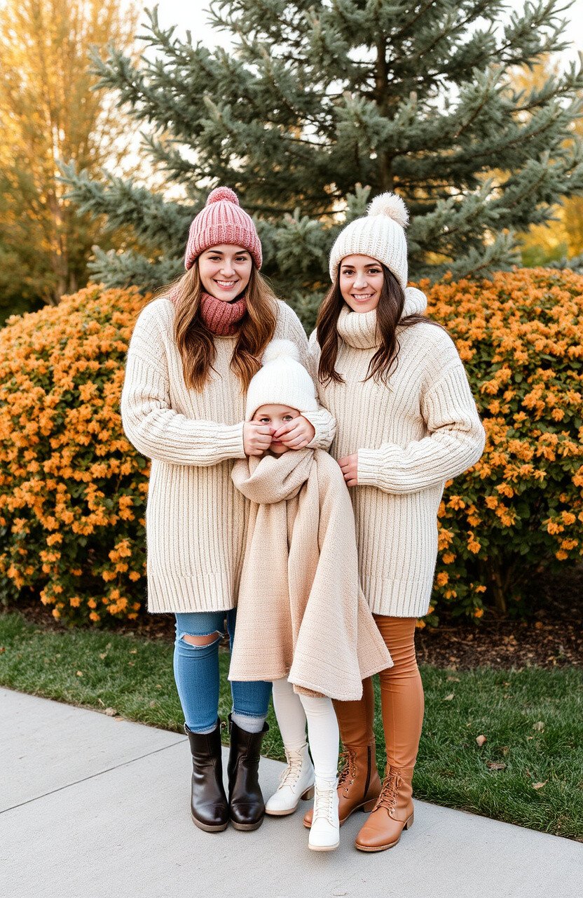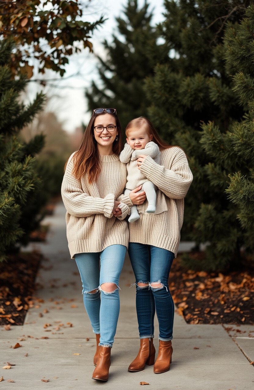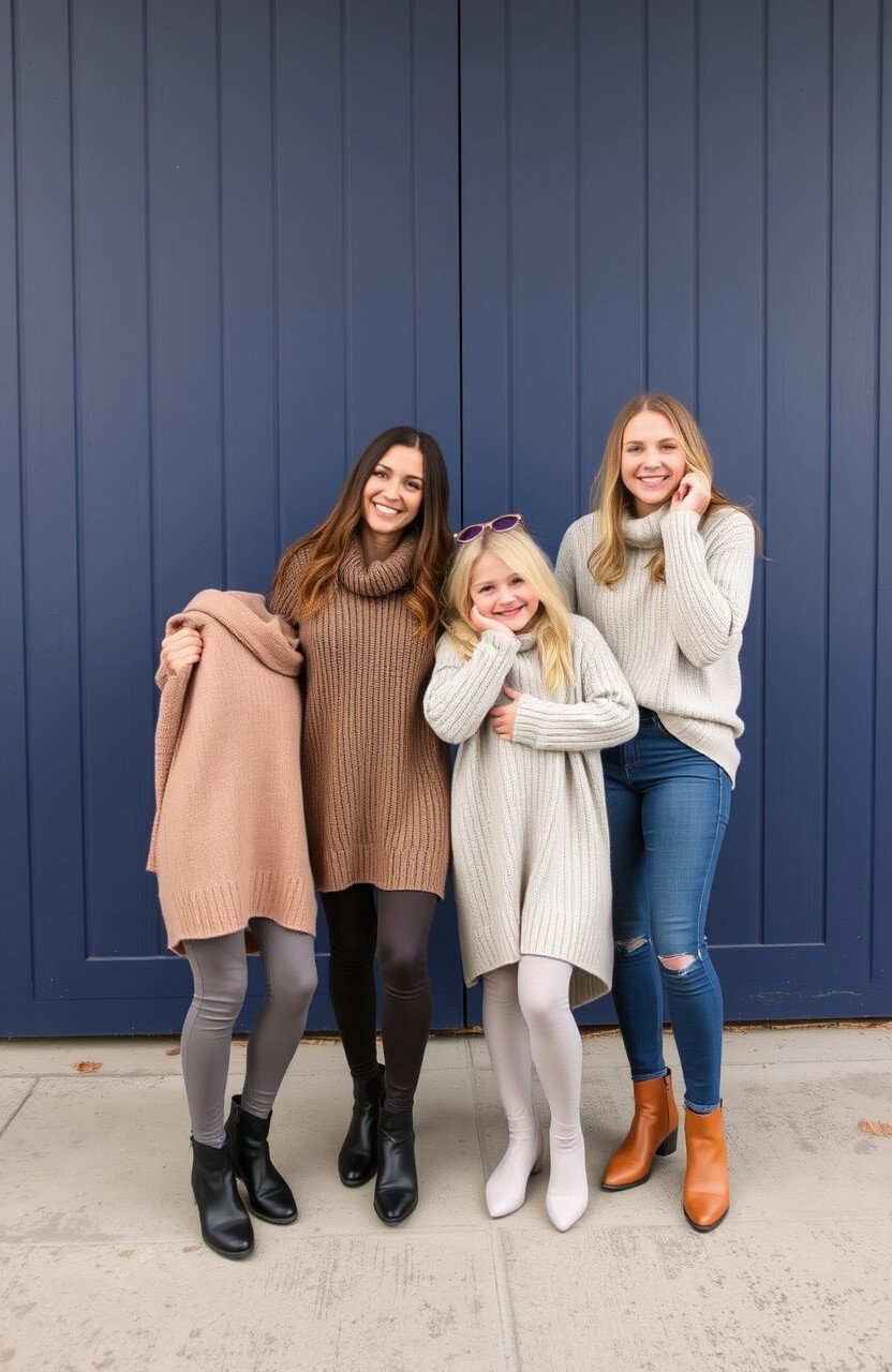 Oversized sweaters are all about comfort and style. They create a relaxed and cozy vibe, perfect for candid family moments.