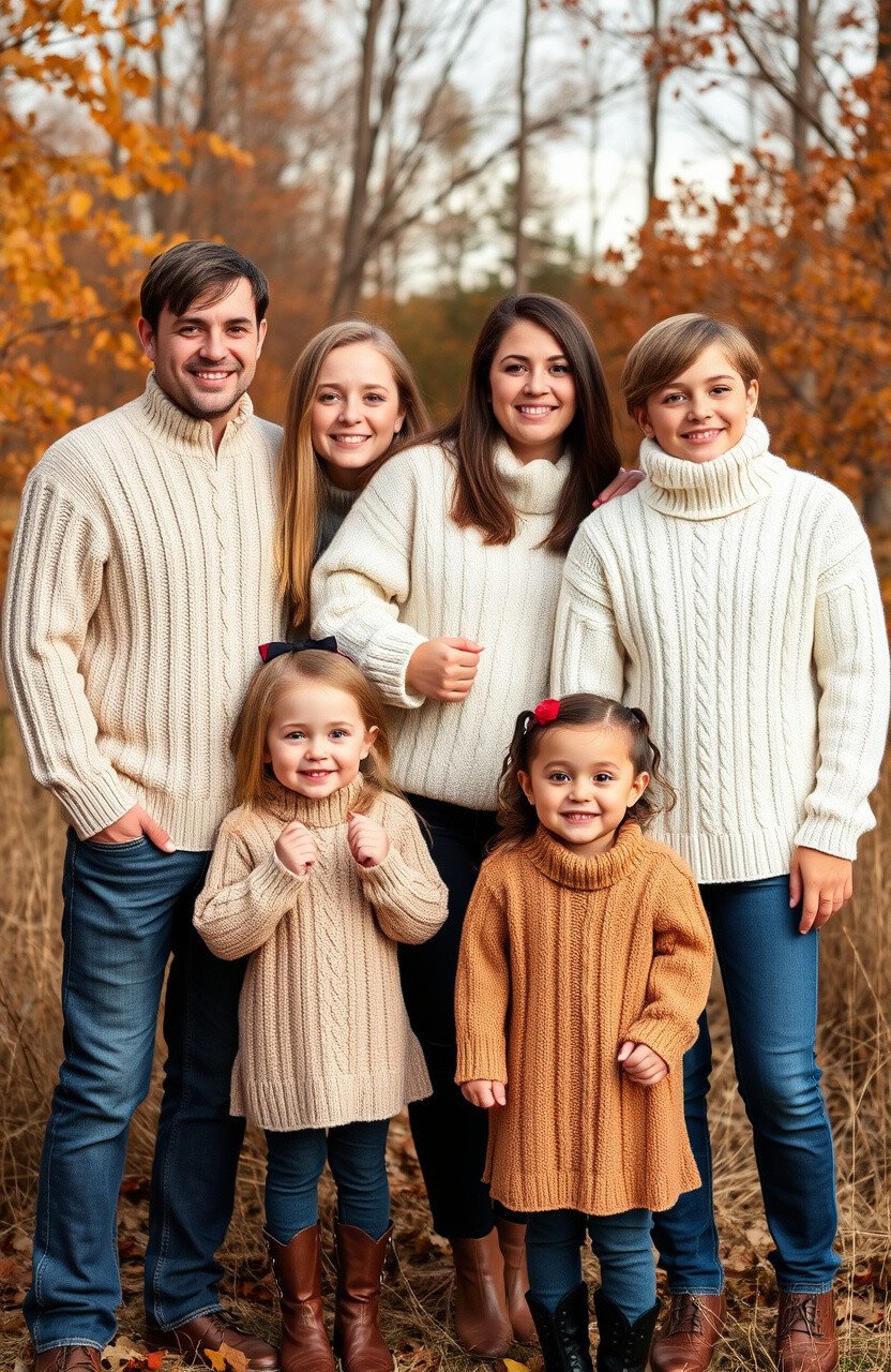 The crisp air and golden leaves of fall create the perfect backdrop for family photos. Imagine capturing these moments with cozy knitwear outfits that blend seamlessly with nature.