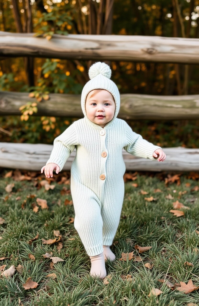 For the youngest family members, knit rompers are both cute and cozy. They keep babies warm and comfortable during outdoor photoshoots.