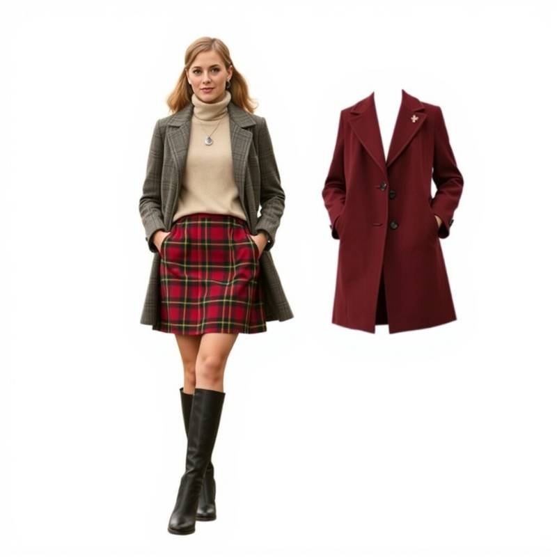 A plaid skirt paired with a turtleneck is a classic look that exudes sophistication. Perfect for cooler months, this outfit keeps you warm while maintaining a stylish edge. Choose a skirt that falls just above the knees for a timeless silhouette.