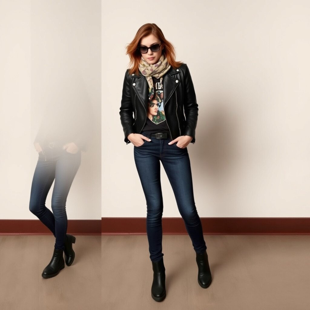 The combination of a leather jacket and skinny jeans is a timeless rocker-chic look. This edgy outfit is perfect for a night out or a casual day when you want to add some attitude to your appearance. Choose a classic black jacket for maximum versatility.