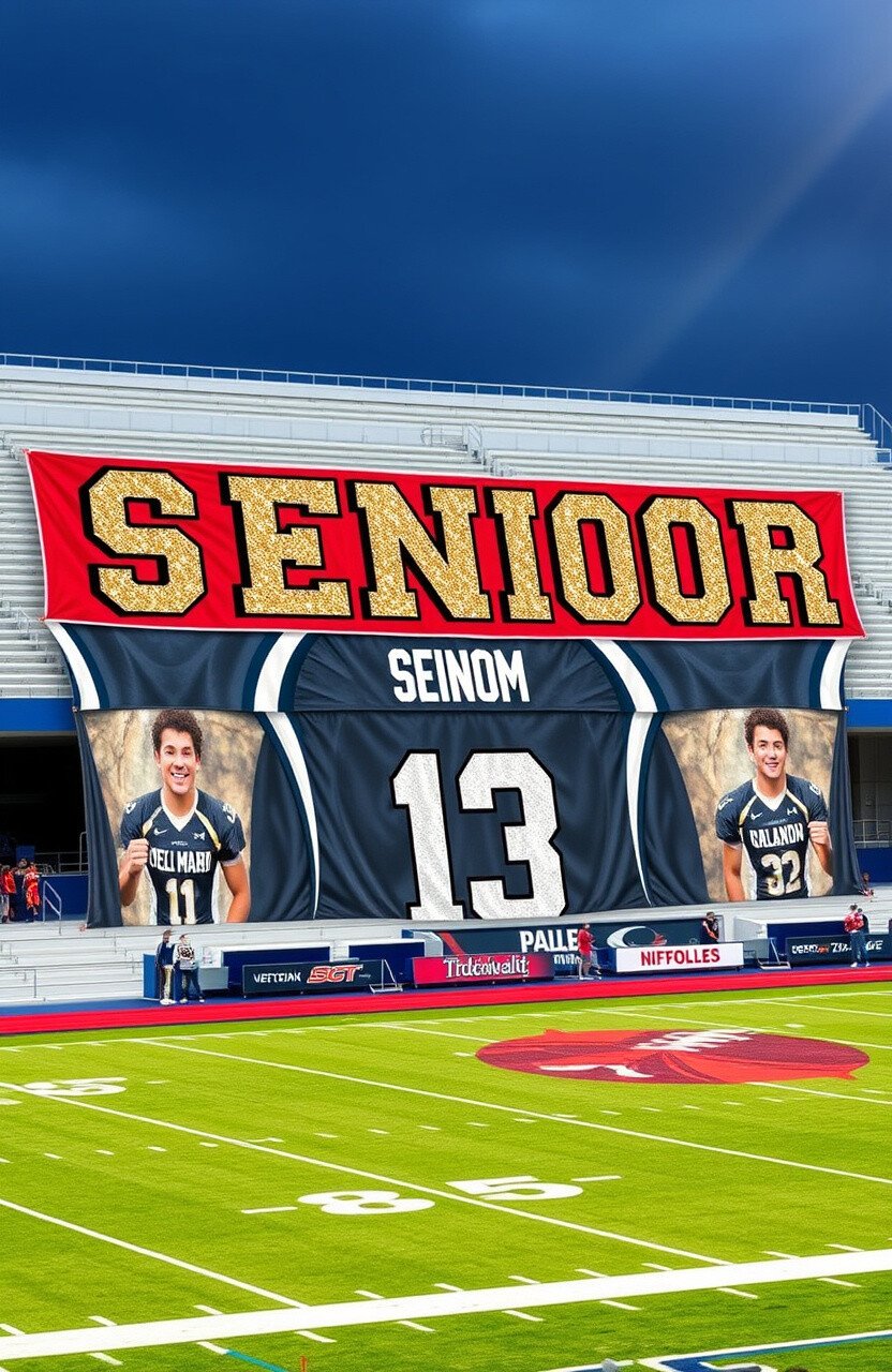 Decorate the stadium with banners showcasing each senior player. Include their photo, name, and jersey number. This turns the venue into a visual celebration of the players’ journey.