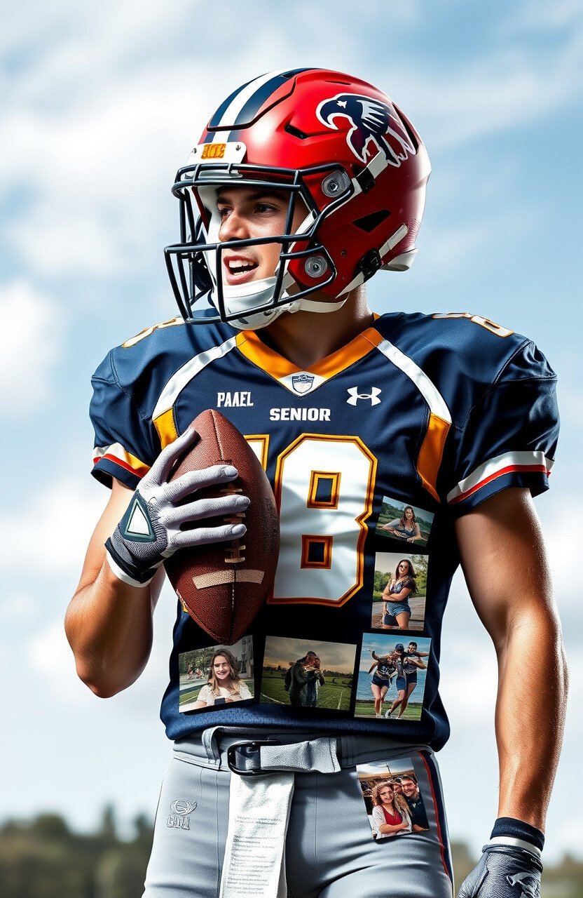 Create a collage of photos from the player’s high school years. Use different shapes and sizes for an artistic touch.