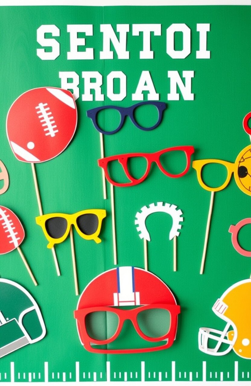 Incorporate photo booth props to make your board playful. Use cutouts like footballs, helmets, and funny glasses for a touch of humor.