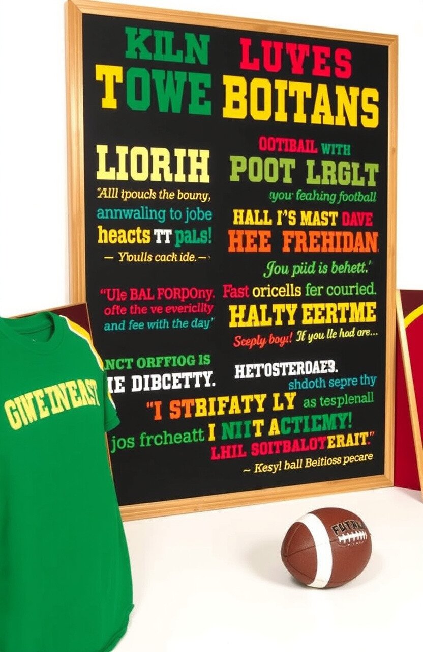 Incorporate quotes from famous football players or coaches that resonate with your team’s journey. Display them in fun fonts and bright colors.