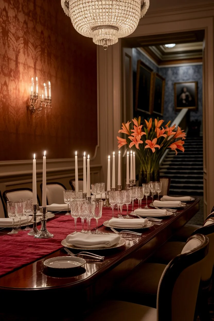 Classical elements, like ornate chandeliers, paired with modern furniture, can create an unexpected harmony. This blend makes your dining room feel both luxurious and inviting.