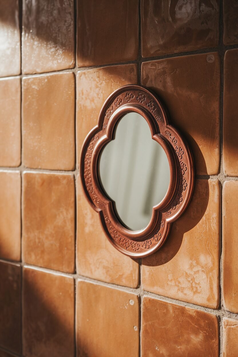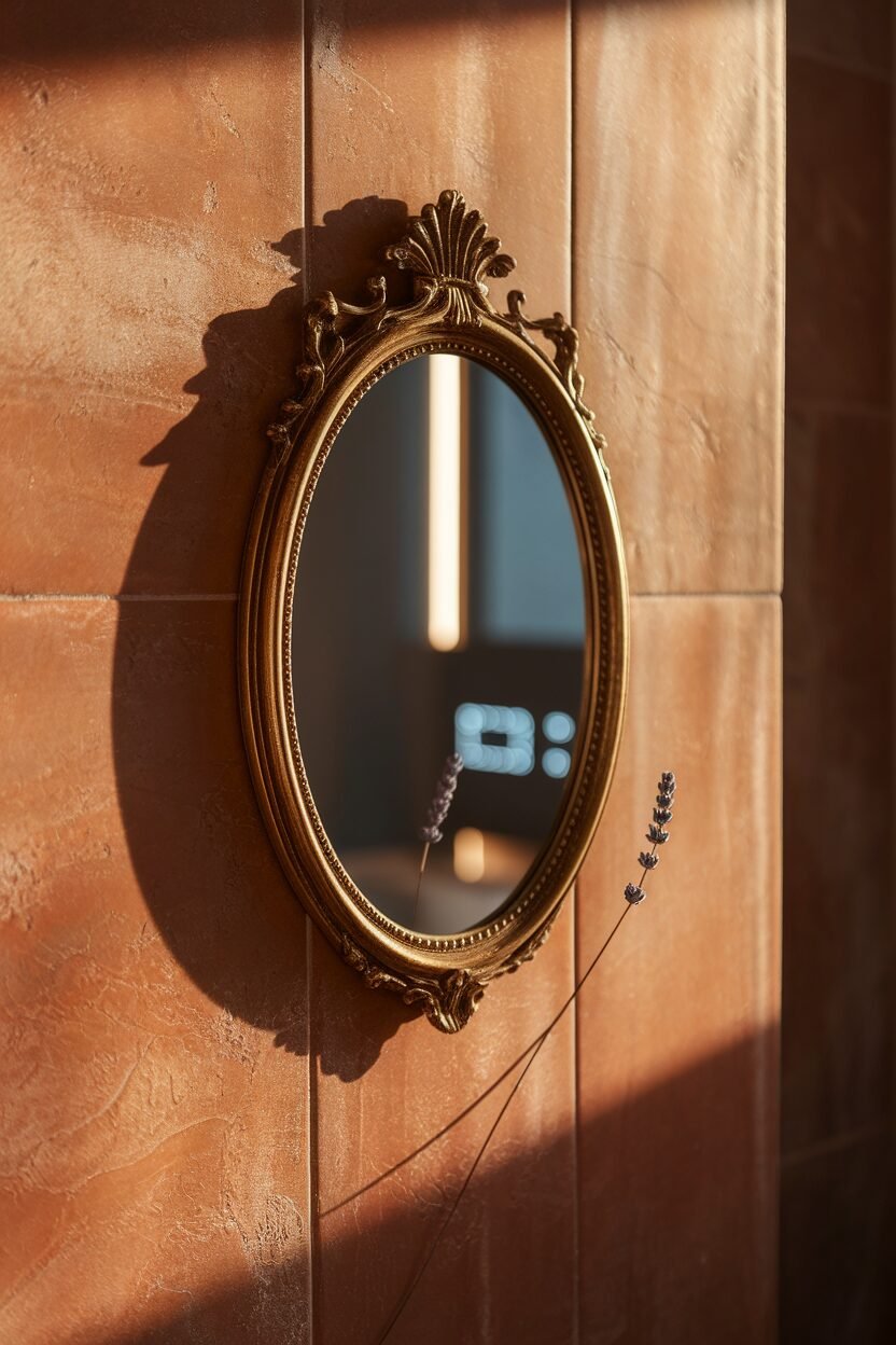 Pair it with soft, neutral colors to let the mirror shine as the centerpiece. This way, it becomes the star of your bathroom while keeping everything balanced.