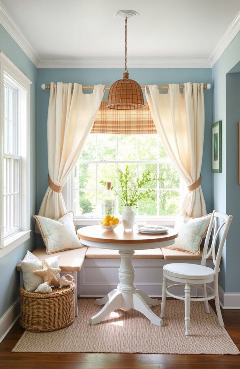 A coastal breakfast nook feels like a seaside escape. Think light blues, sandy beiges, and plenty of natural light.