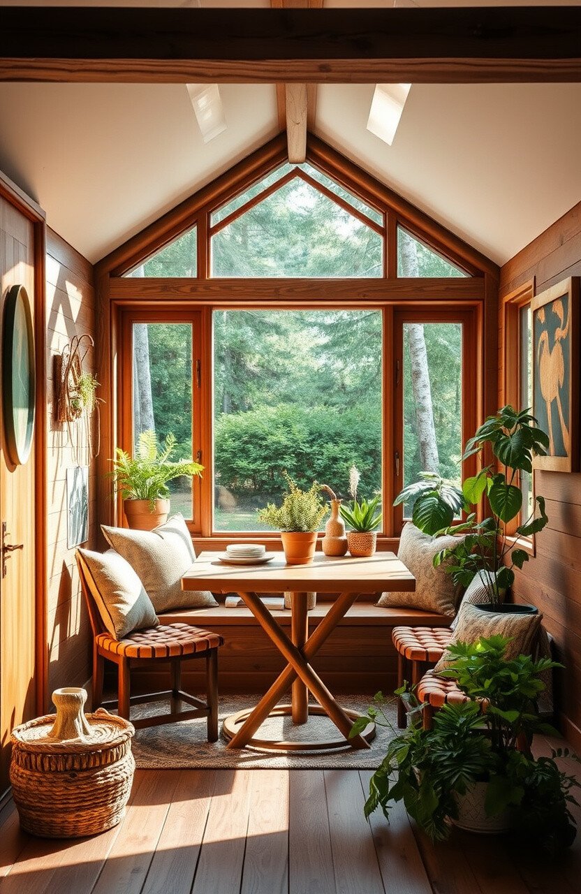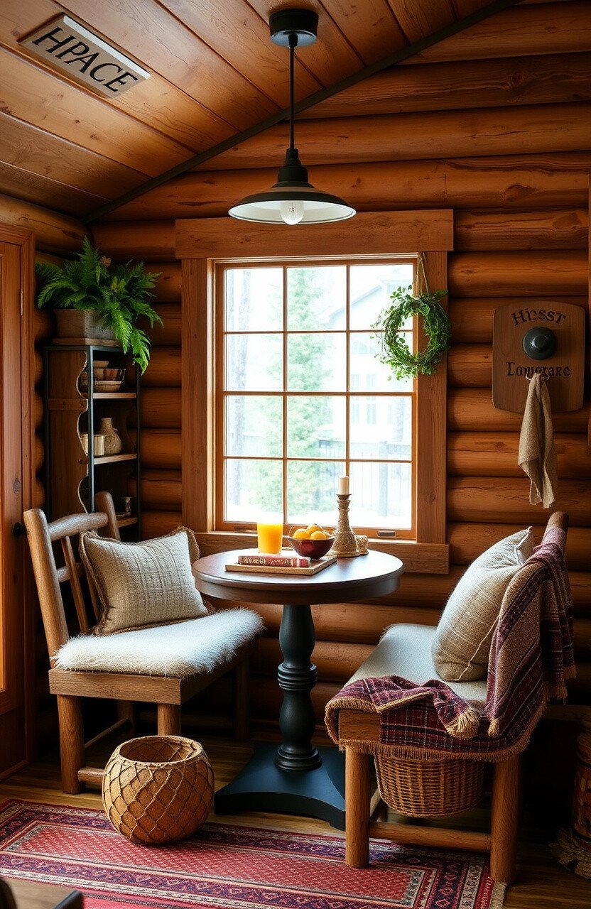 Create a cozy cabin breakfast nook with warm, rustic decor. It’s like having breakfast in a mountain retreat.