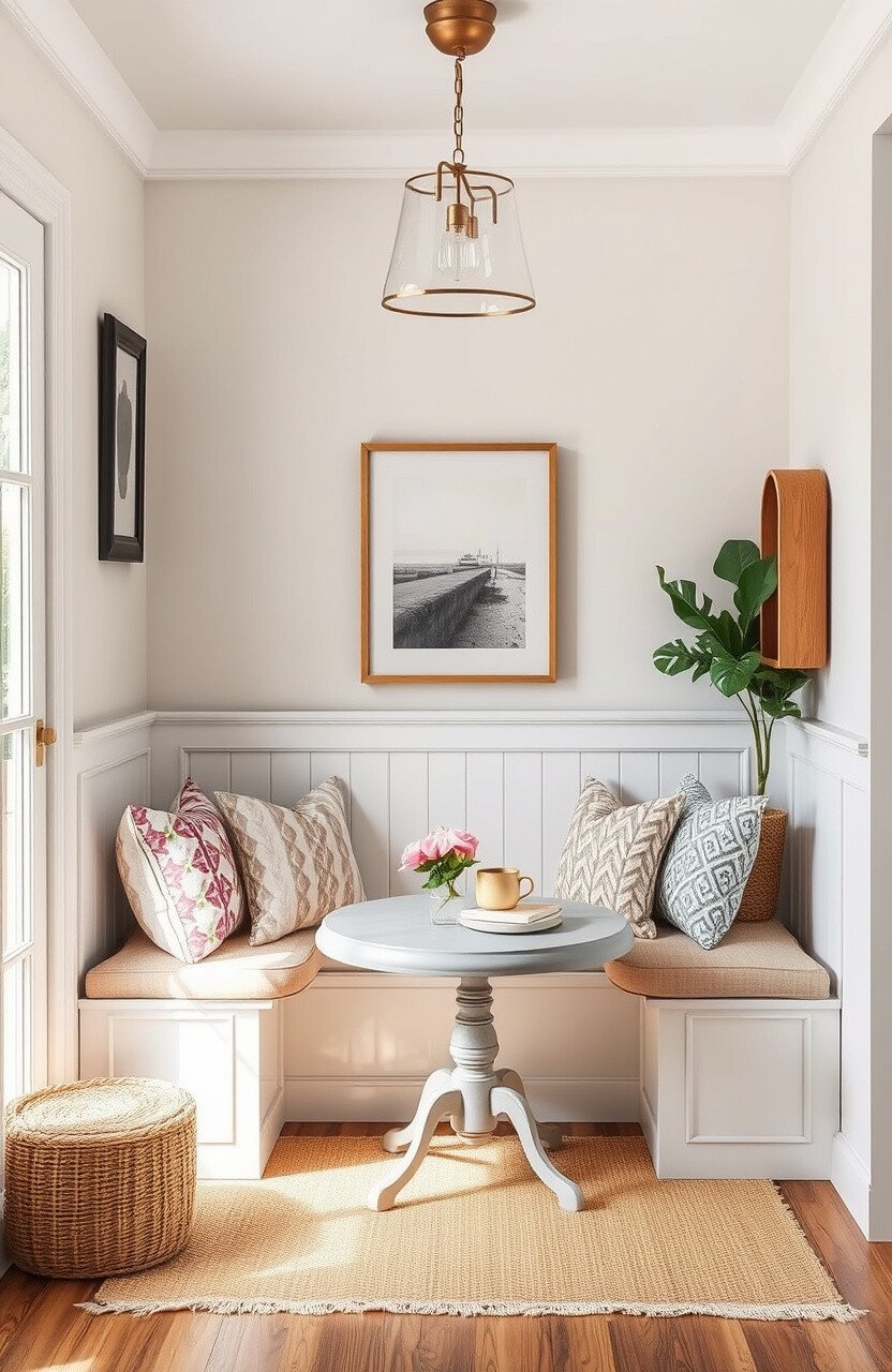 Imagine a small, inviting corner in your kitchen with plush cushions and a charming table. This cozy nook makes you feel like you’re wrapped in a warm hug every morning.