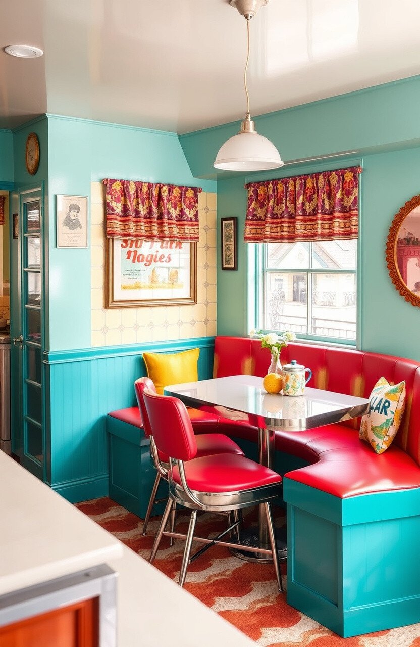 Bring a touch of nostalgia to your breakfast nook with vibrant vintage decor. It’s like having breakfast in a retro diner.