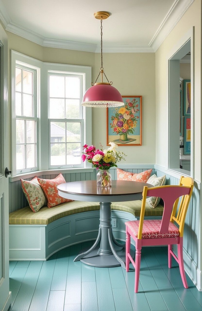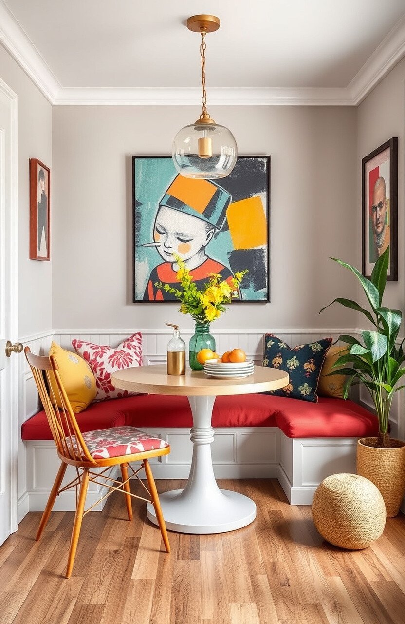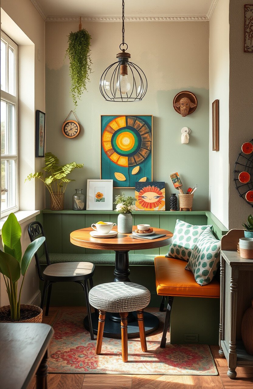 Create an artistic breakfast nook with creative decor. It’s like having breakfast in an art studio.