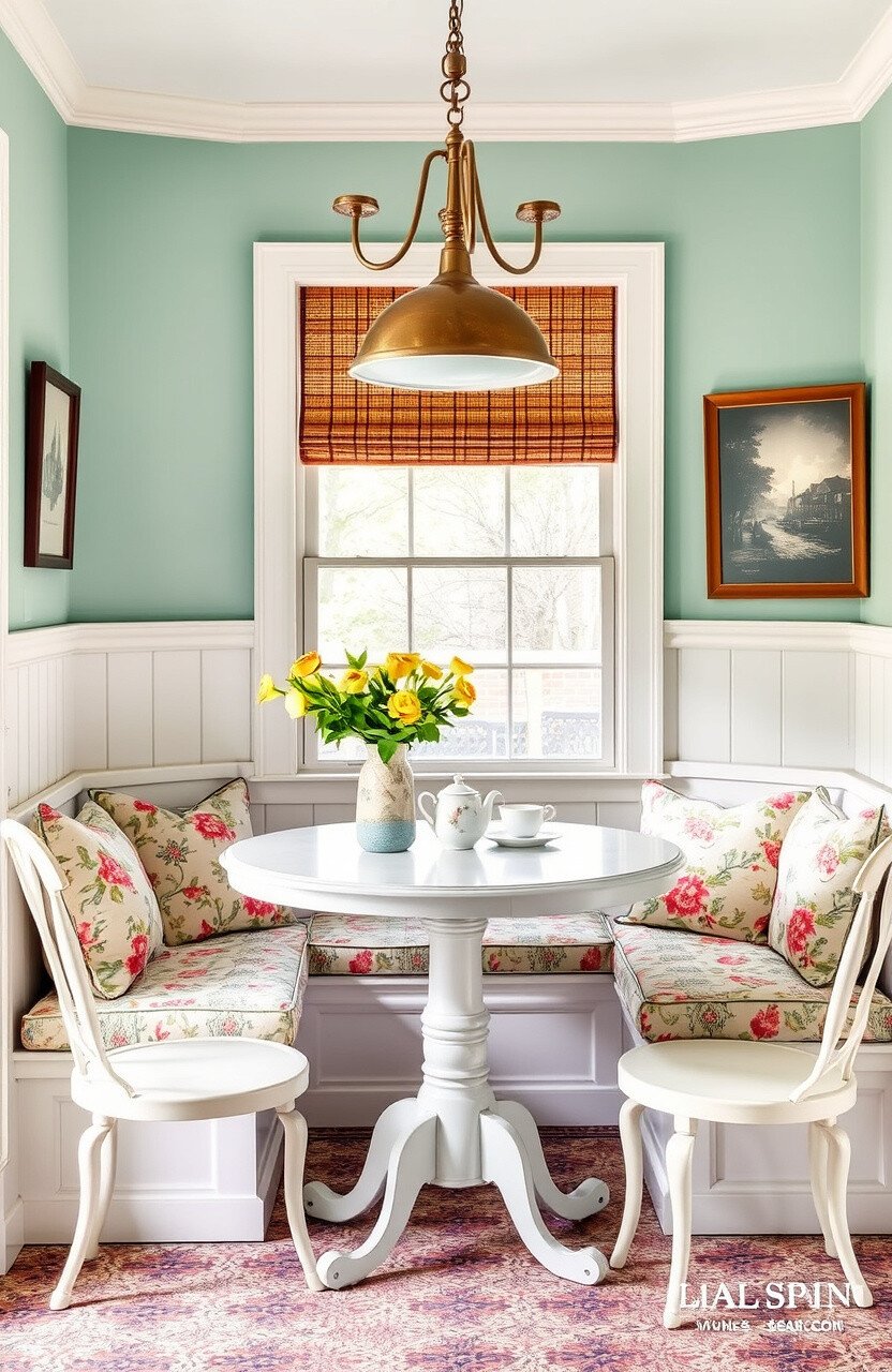 Create a cozy cottage breakfast nook with warm, inviting decor. It’s like having breakfast in a charming cottage.