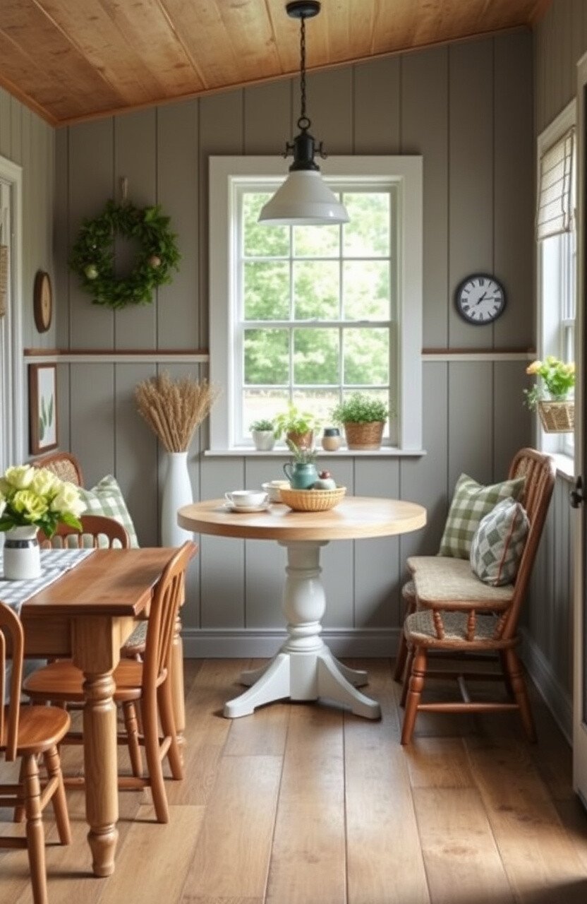 Embrace the charm of the countryside with a rustic breakfast nook. Think wooden benches and a farmhouse table.