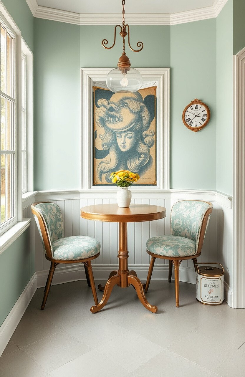 Combine vintage elements with chic style for a unique breakfast nook. It’s like having breakfast in a vintage boutique.