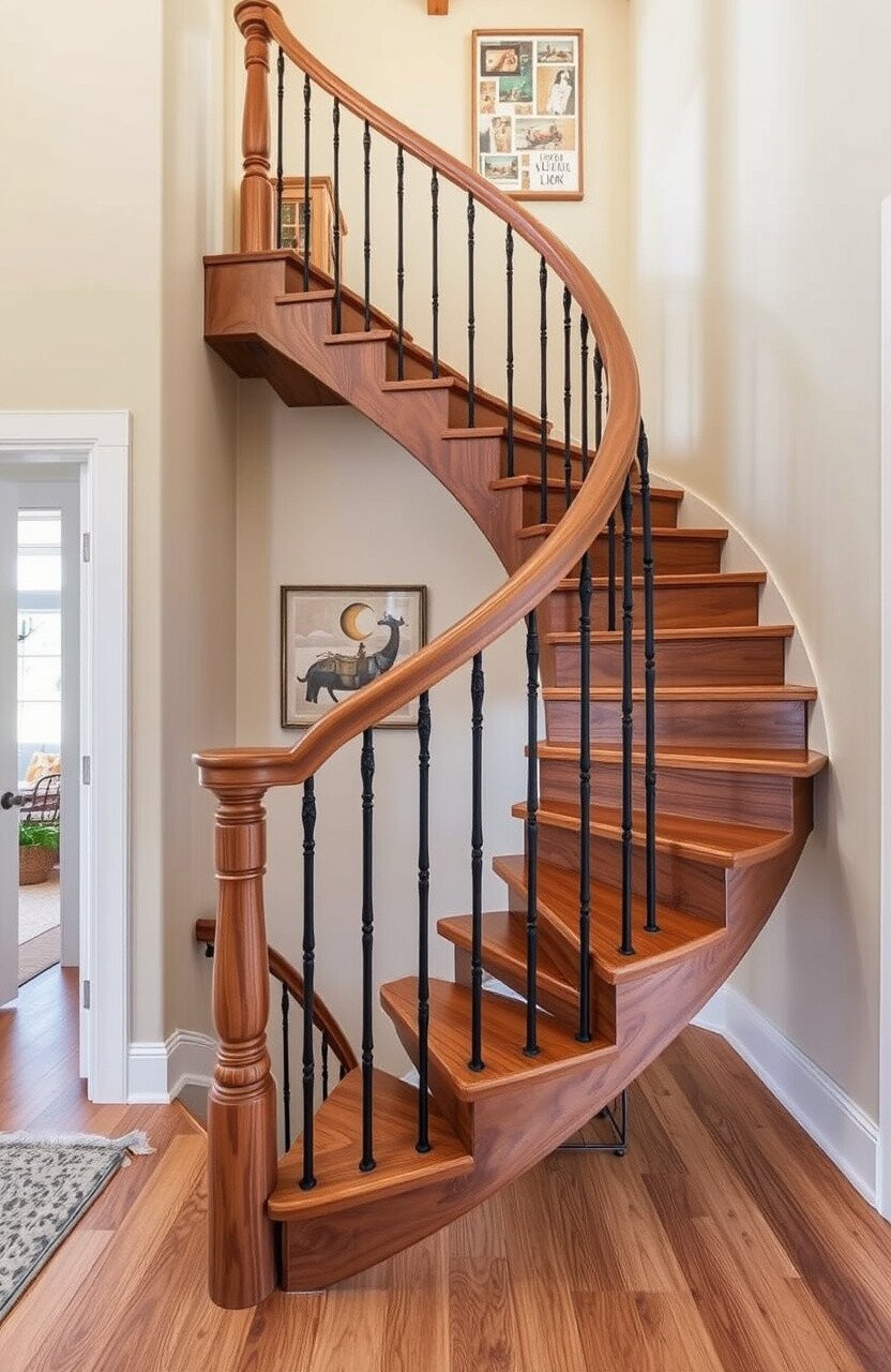 Curved stairs are always in style, adding a touch of luxury. They elevate the look of any home.