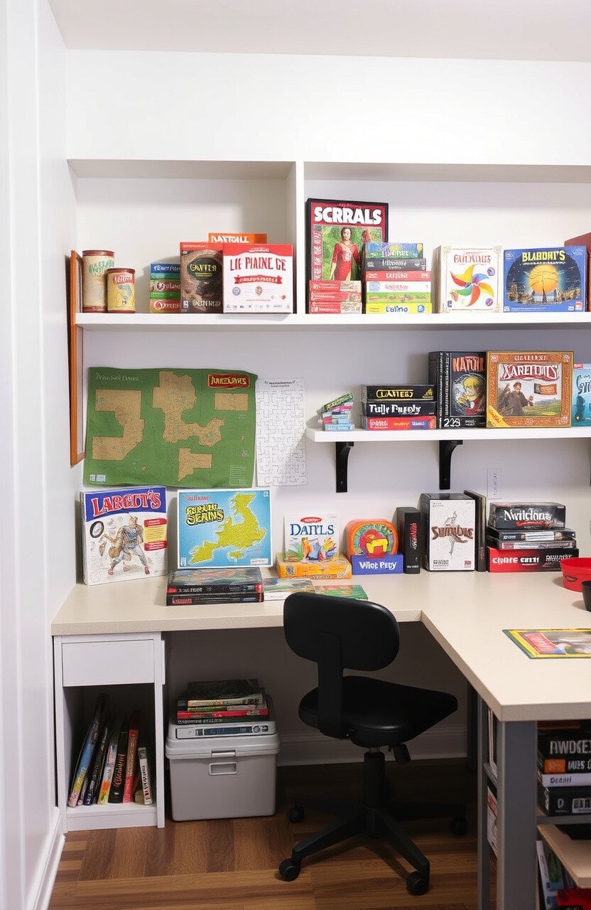 Arrange games on shelves for easy access. Personalize with colorful game-themed decor.