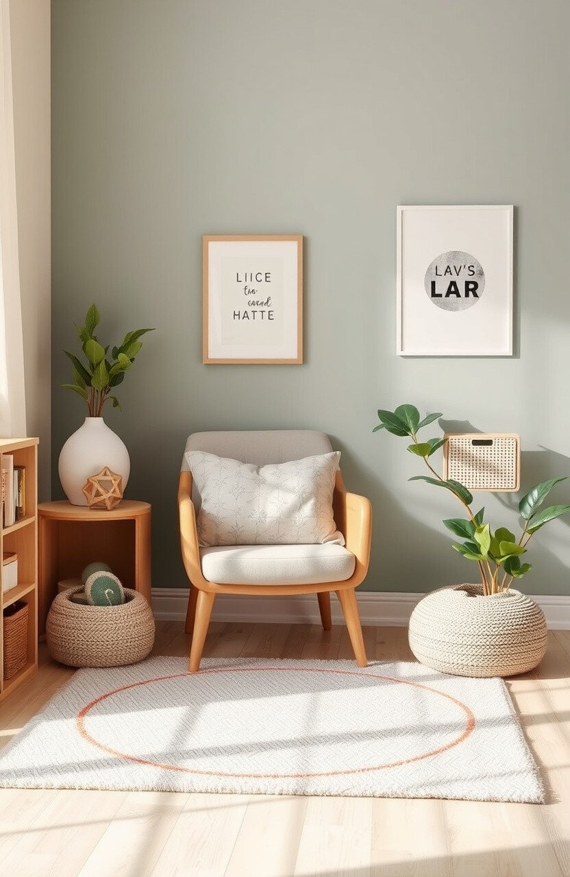 Include a comfortable chair and soothing decor. Personalize with soft textures and gentle lighting.