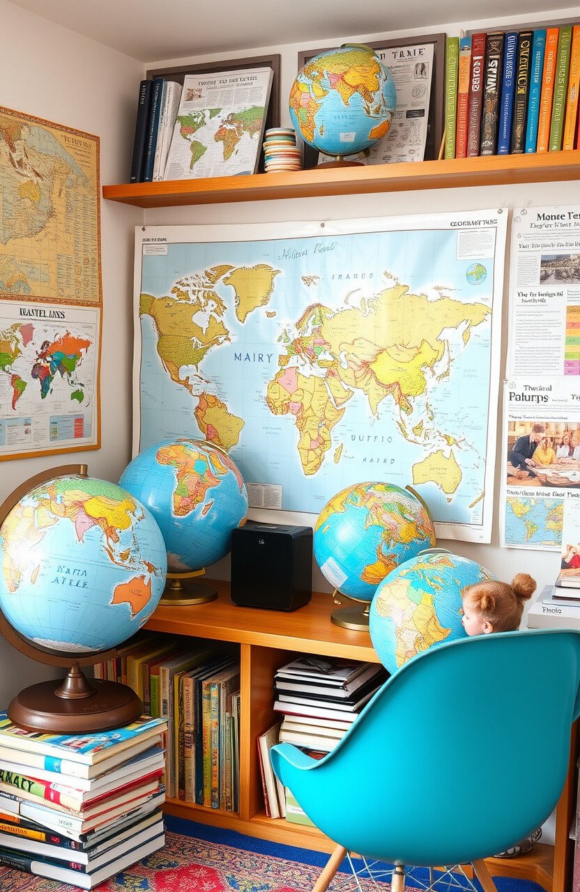 Decorate with colorful maps and travel-themed decor. Personalize with souvenirs from past trips.