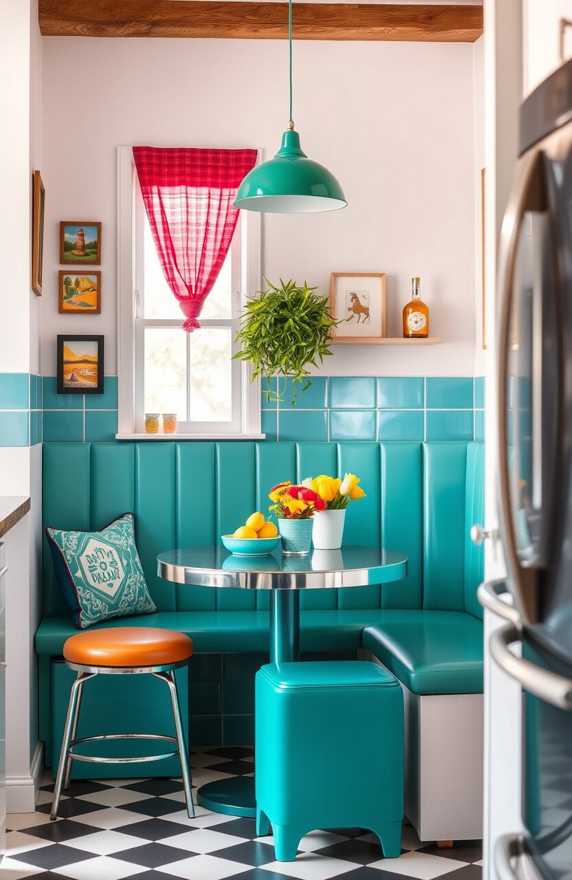 Cost-effective and vibrant, it’s great for retro lovers. This nook is a lively space in your kitchen.