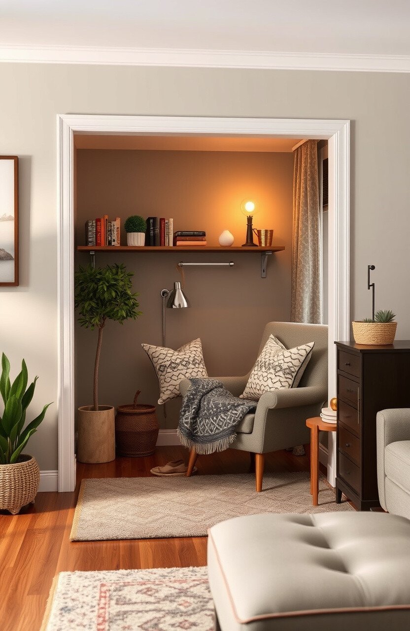 Imagine a tiny corner in your living room turned into a reading paradise. Add a comfy chair, some soft pillows, and a small shelf for books.