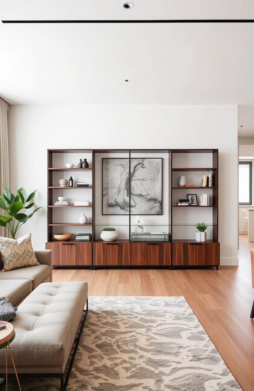 This adds dimension and storage to any room. Ideal for living rooms or offices.
