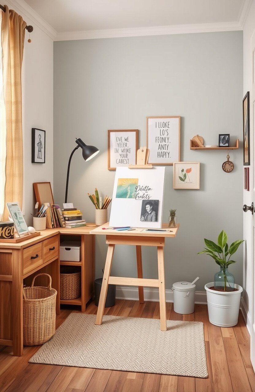 Set up a small art studio with an easel and supplies. Keep materials organized and handy.