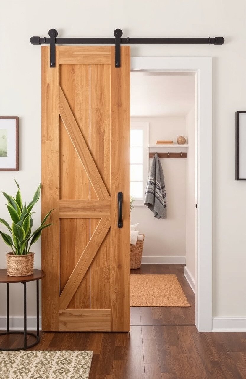 Add a rustic touch with a sliding barn door. Ideal for separating spaces or closets.