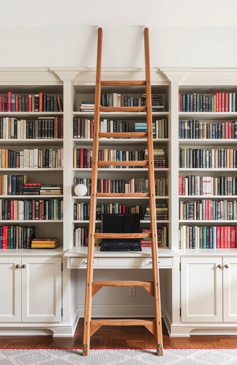 A ladder desk combines style and function, with a desk surface and shelves above. It’s like a mini library at your fingertips.