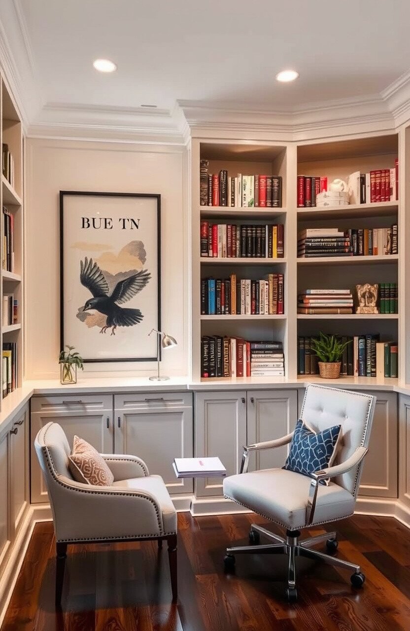 They free up floor space, making your study feel bigger. Plus, they add an interesting visual element.