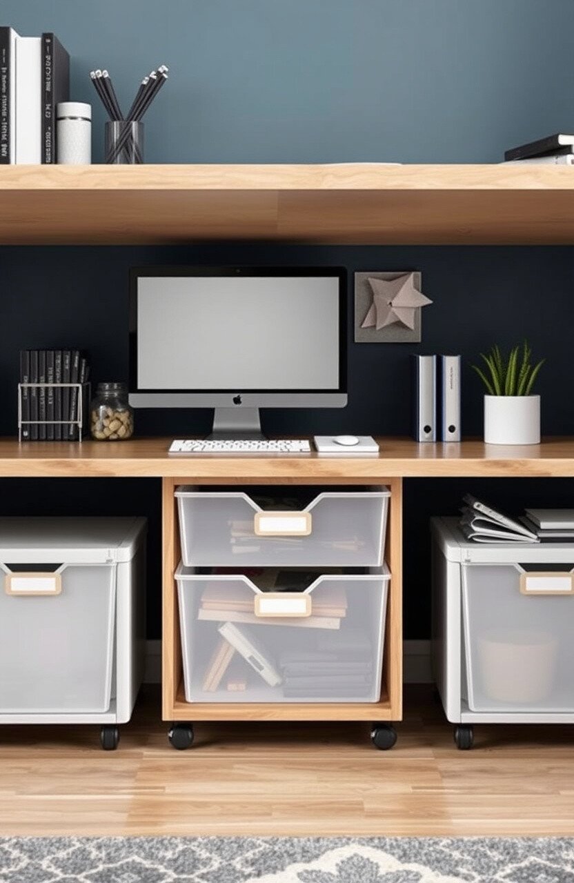 Under-desk storage is like a secret hideaway for your supplies. With drawers or rolling carts, you can store anything from papers to tech gadgets.