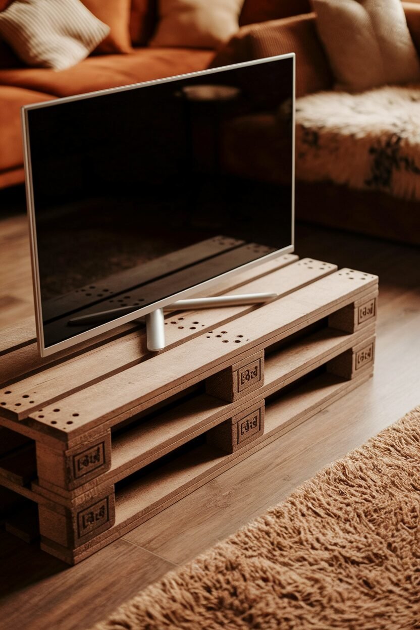 A wood pallet TV stand adds a unique rustic touch to your living space. This DIY project allows you to customize the size and finish to match your style.