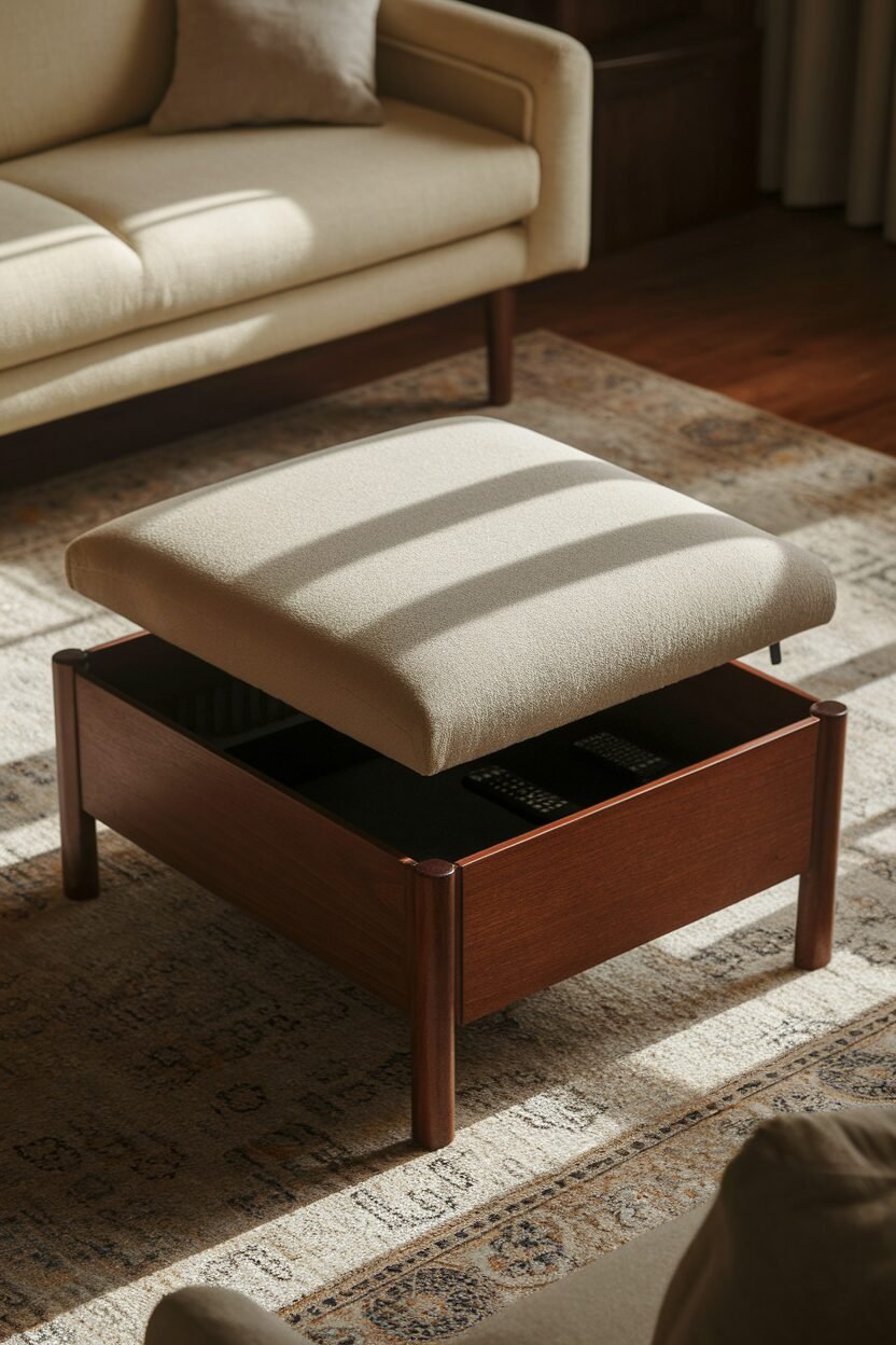 An ottoman is not just for putting your feet up; it can serve many purposes! Choose one that opens up for storage, perfect for hiding blankets or remotes.