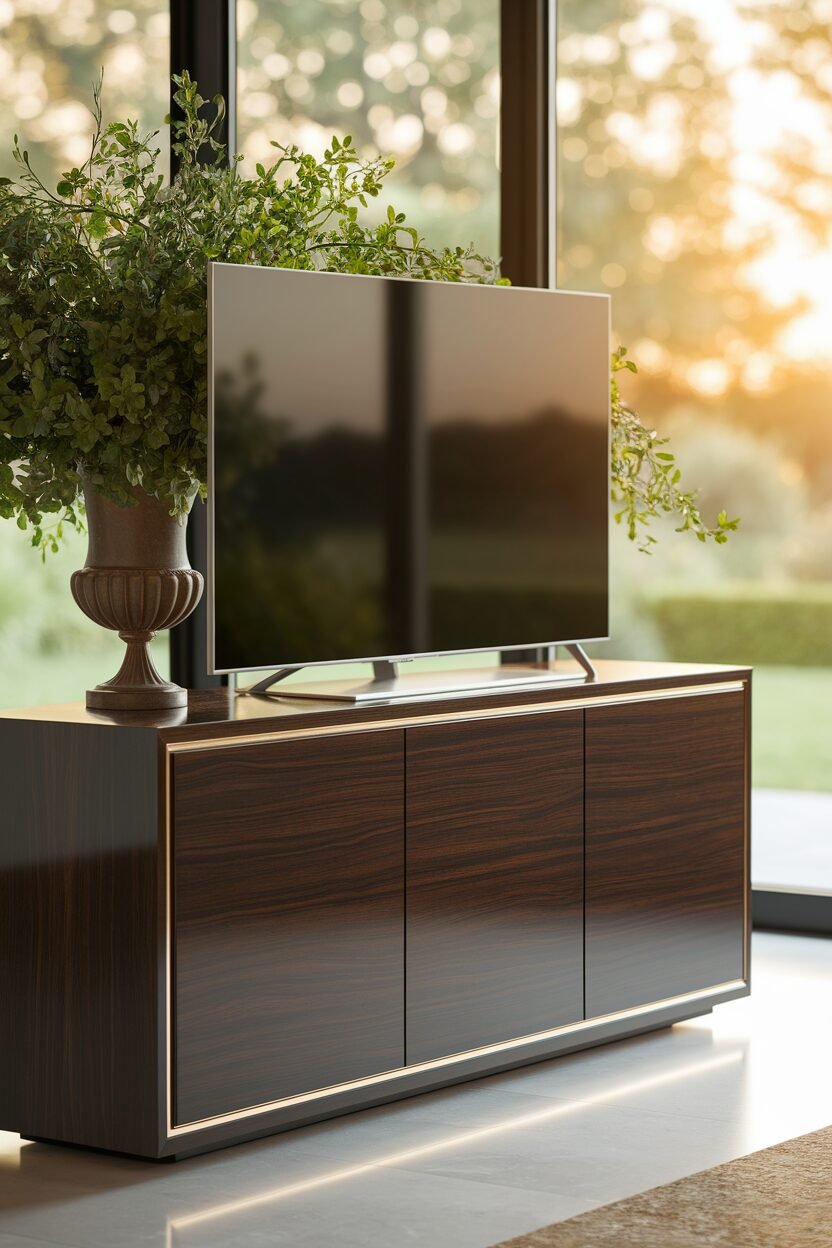 A chic sideboard can serve as a stylish base for your TV while providing extra storage. Choose one that matches your decor style for a cohesive look.