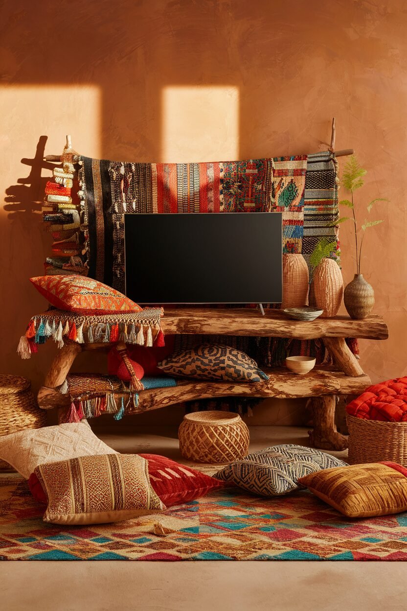 A bohemian TV stand can bring a free-spirited vibe to your home. Look for pieces made from natural materials like rattan or reclaimed wood for an earthy feel.
