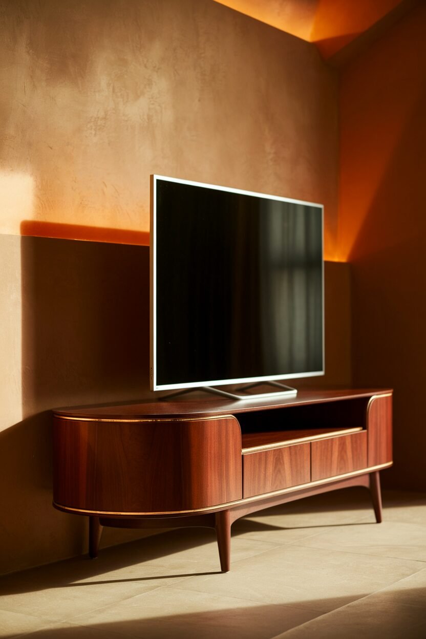 A vintage media console brings charm and character to your TV space. These pieces often have unique designs that add a nostalgic touch.