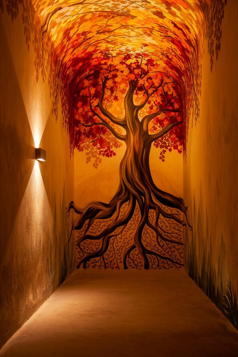 Murals are unique because they can be customized to fit your interests and style, from cityscapes to serene nature scenes. You can also hire a local artist to create a bespoke piece, ensuring your hallway is truly one-of-a-kind.