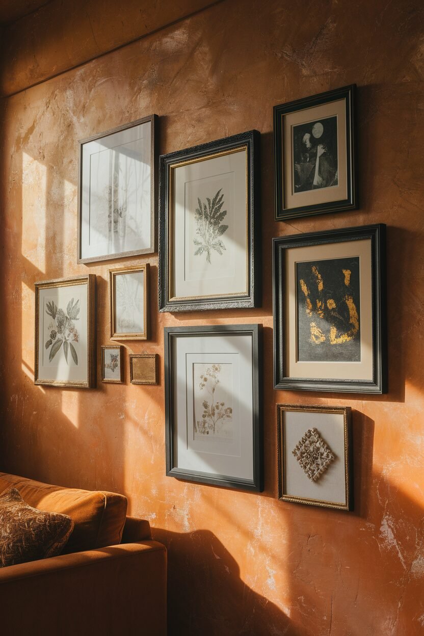 Imagine a wall that tells a story, filled with pieces from different places and times. An eclectic mix gallery wall combines various art styles, sizes, and frames for a unique look. This idea is perfect for showing off your personality and interests.