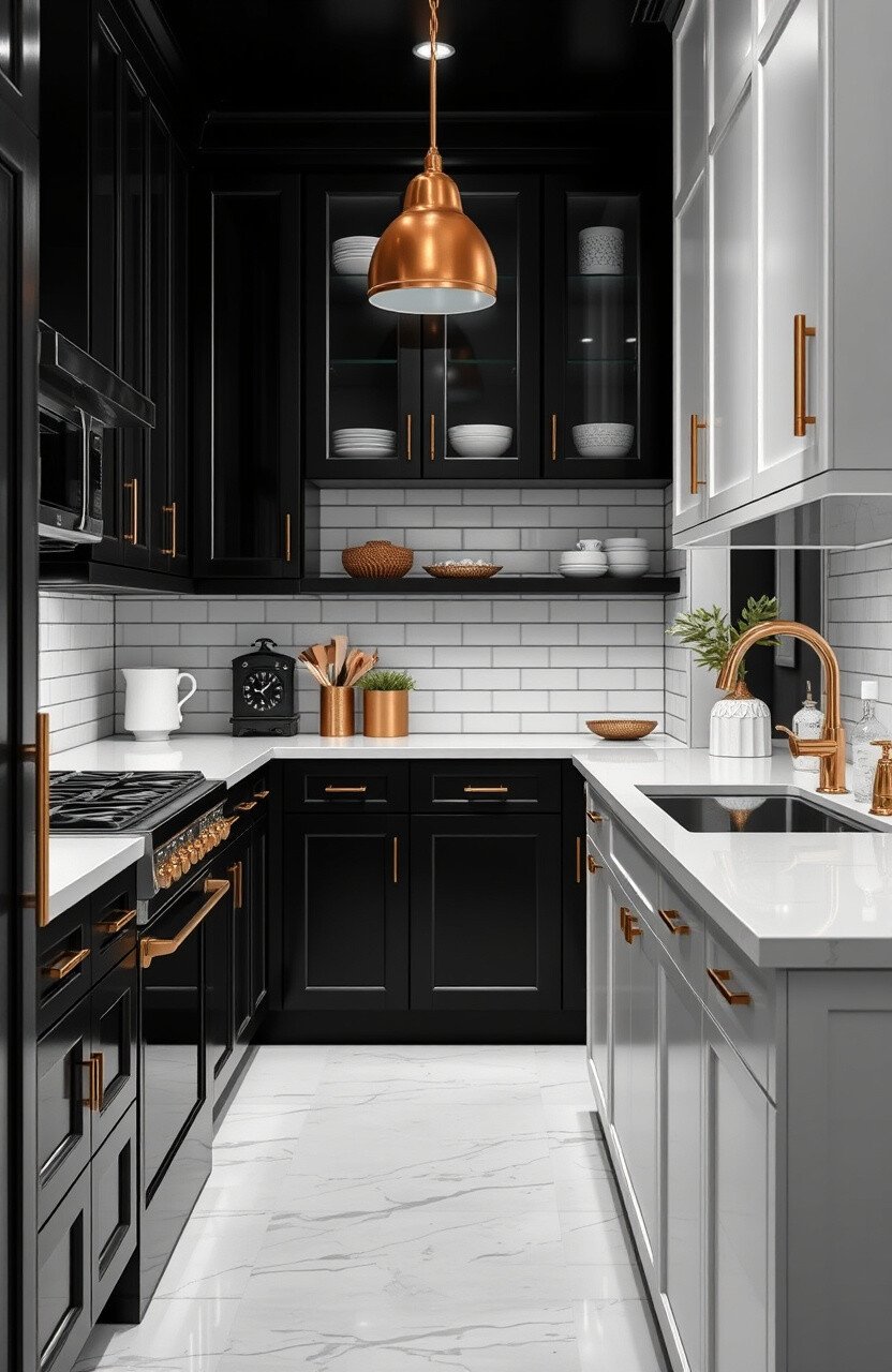 Bring the glamour of the Art Deco era into your kitchen with bold geometric patterns and luxurious materials.