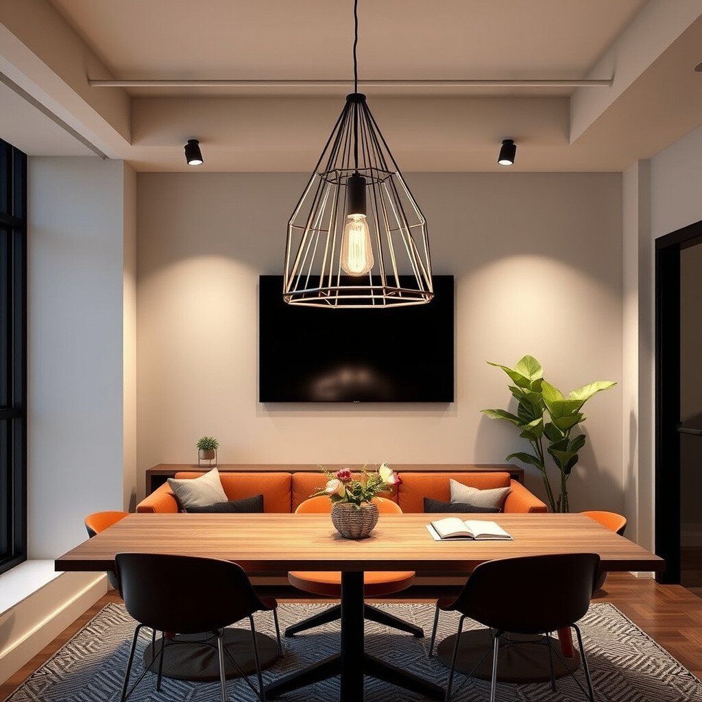 A geometric light fixture can be a statement piece. Imagine a pendant light with a wireframe design.