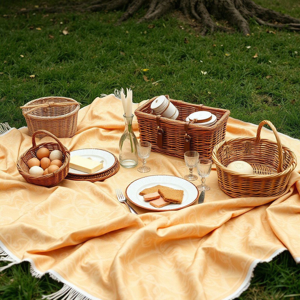 A picnic umbrella with gold lace edging can provide shade and style. It’s practical and pretty, offering a cozy spot to relax. The gold lace adds a touch of sophistication to your picnic.