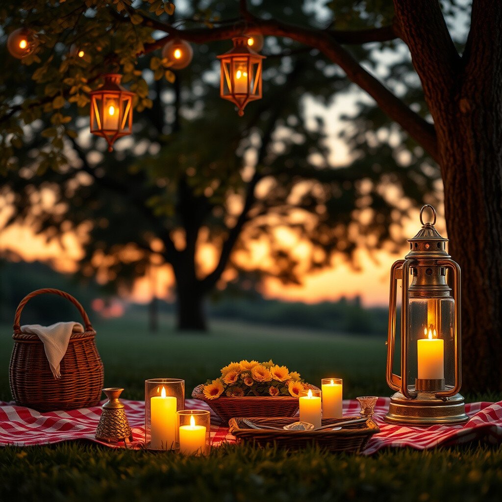 Golden lanterns can light up your picnic as the sun sets, adding a warm, cozy glow. Hang them on trees or place them on the ground to create pathways. Their vintage design will transport you to a simpler, more romantic time.