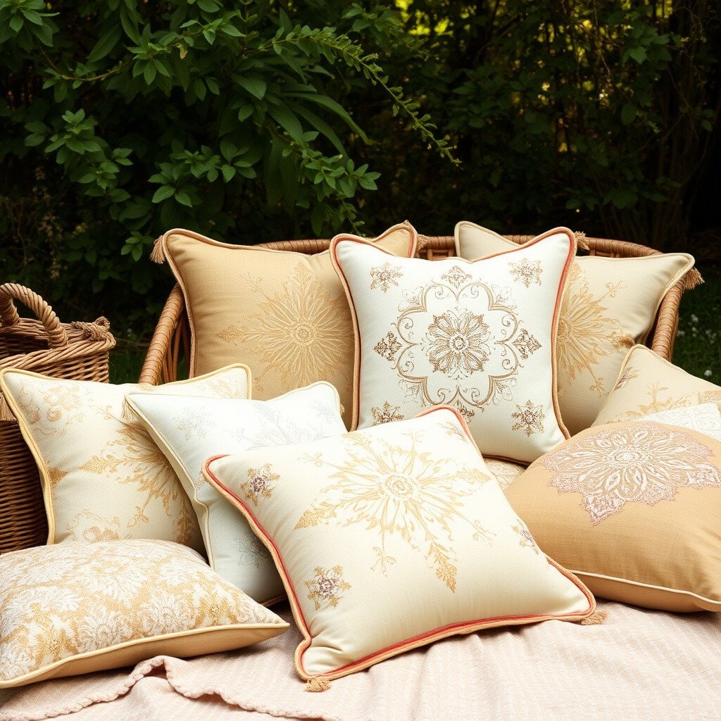 Provide comfort with vintage cushions in shades of gold and cream. Look for unique patterns or embroideries that add personality to your seating area. They can be strewn around for a relaxed, bohemian feel.