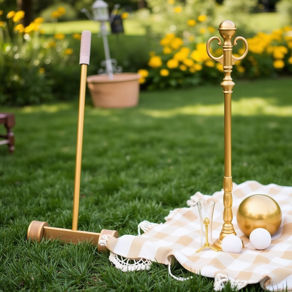 Include games with a vintage twist, like croquet or bocce ball, in your picnic. Paint the equipment gold for a cohesive look. These games are fun and allow guests to engage in friendly competition.