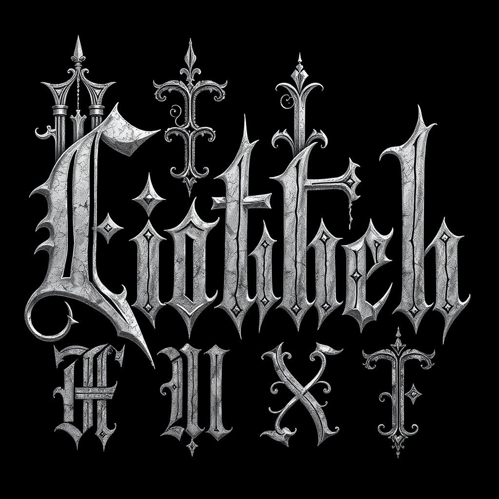 Gothic letters are dramatic and intricate, with a historic feel. They bring a sense of mystery and depth to any design.