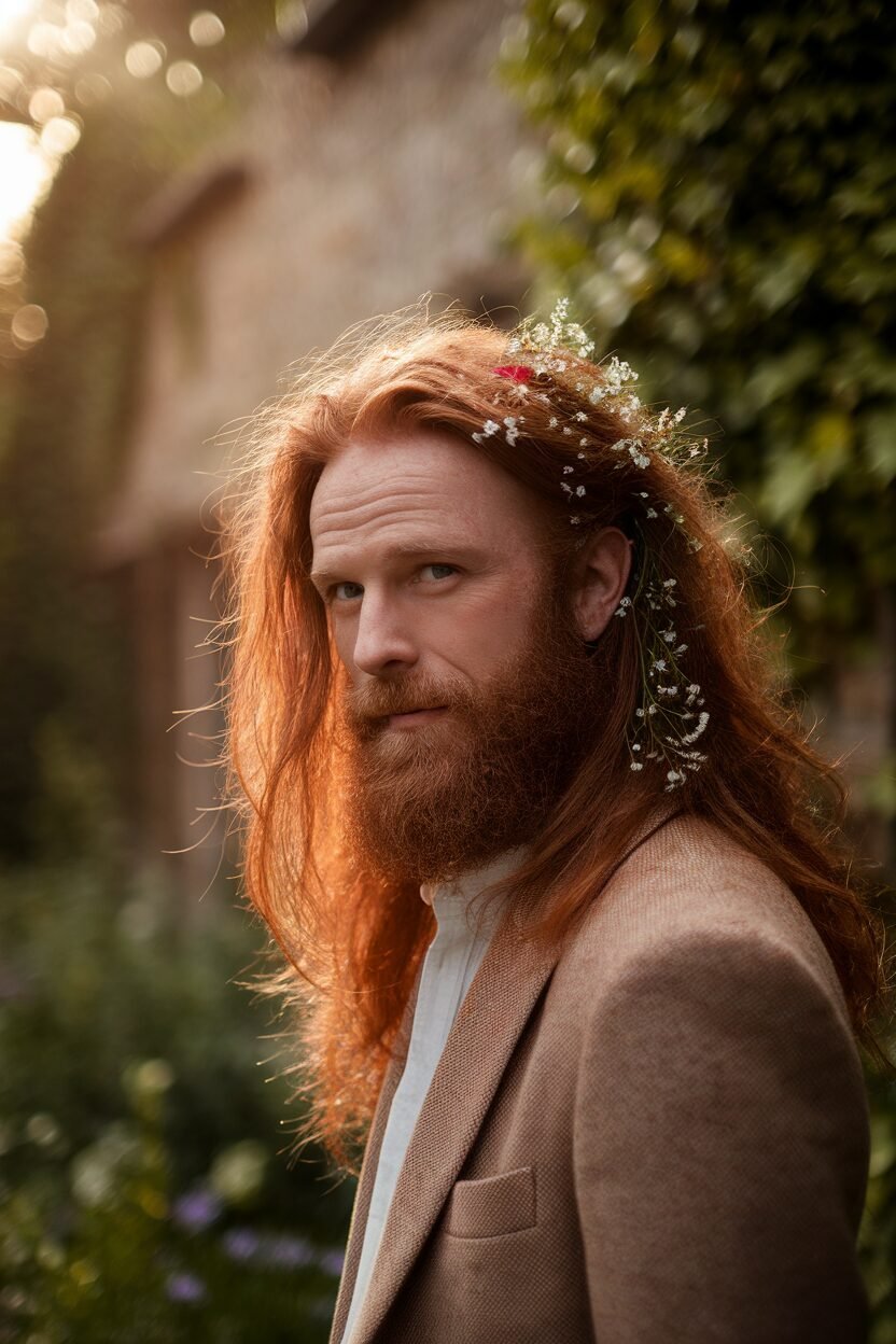 The bohemian style is perfect for a free-spirited groom. It’s relaxed, artistic, and full of charm.